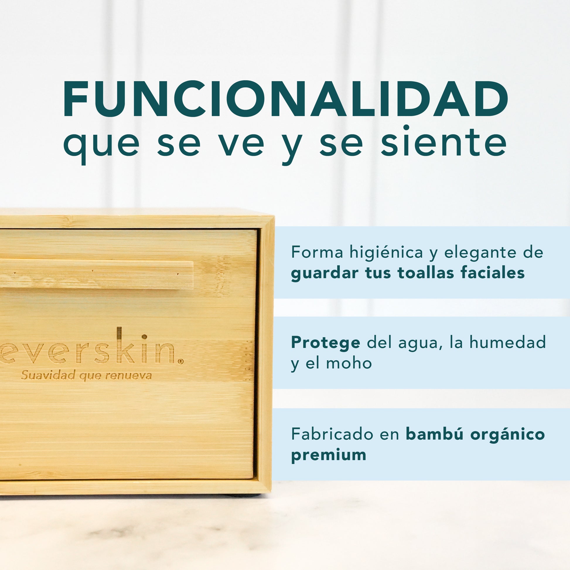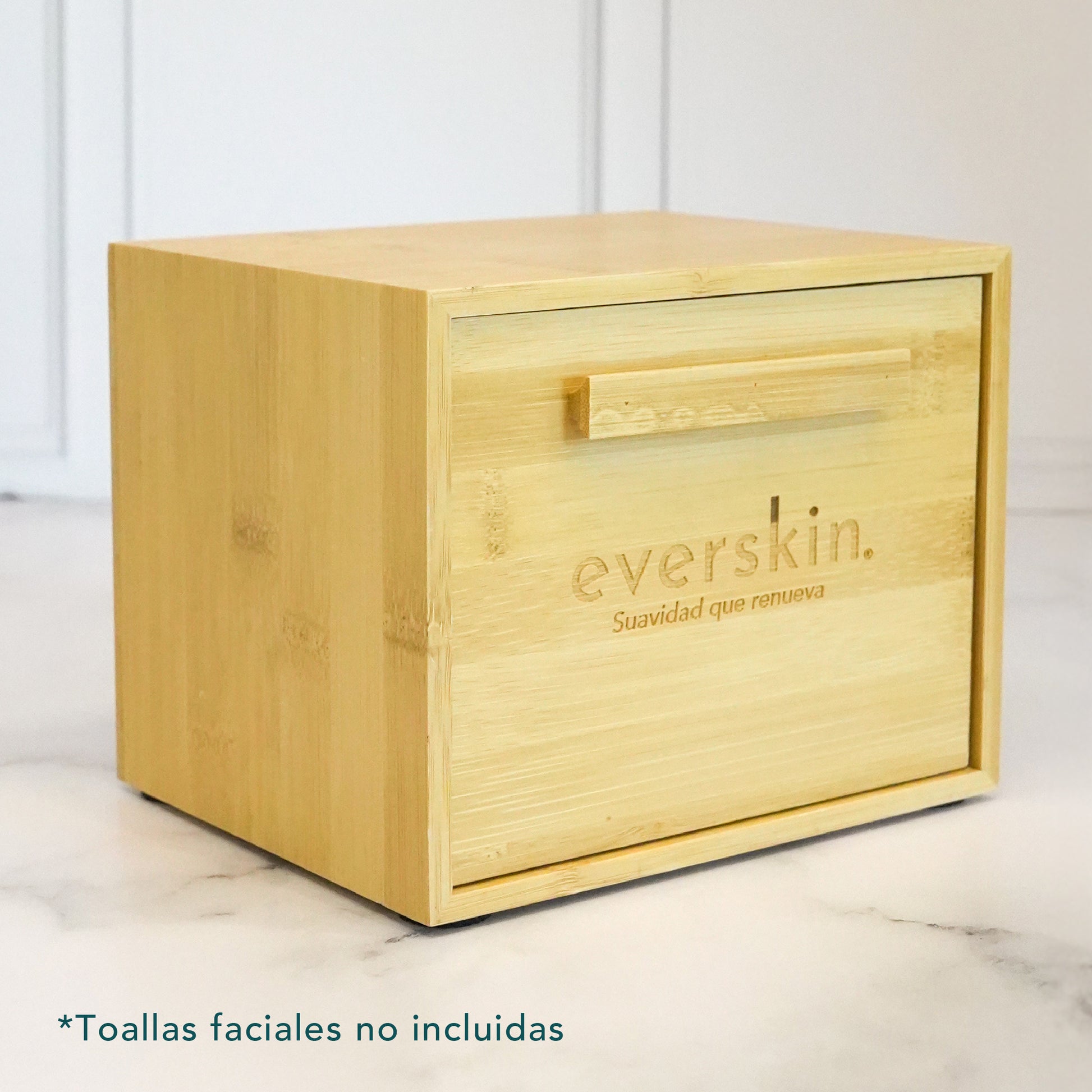 La caja de bambú premium está diseñada para toallas faciales biodegradables XL (25 × 30 cm), combinando funcionalidad, elegancia y sustentabilidad. (NO INCLUYE TOALLAS)